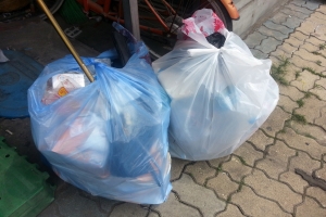 서울로 가져온 쓰레기를 필자 매장에서 쓰레기 봉투에 담습니다.^^ |