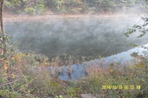 새벽안개가 이쁜 계곡지 상류권 |