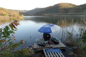 전날 세분의 월척 조과에.. 저와 쥴리형수님.. 맨꽝님.. 모두 기대감 만땅입니다 뜰채에 망태기까정 전부 담궈 놨습니다...^^ |