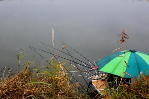 용인 사장님이 끌려 나간 낚싯대를 건지고 있습니다. |