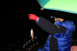 | 마눌님이 밤낚시에 그래도 붕어를 걸어 냅니다. |