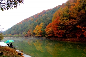 | 산속 소류지의 아침이 밝아 옵니다. |