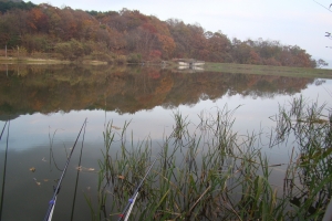 | 안개가 자욱한 저수지 위에 제가 만든 캐미가 잘 보입니다. |