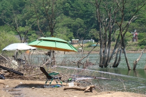 방금 전까지 낚시를 하시고 쉬겠다고 자리를 정리하는 현지분 |