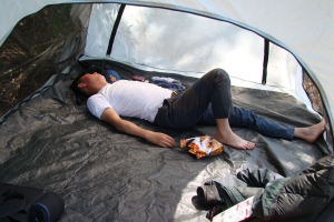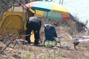| 방금 전까지 낚시를 하시고 쉬겠다고 자리를 정리하는 현지분 |