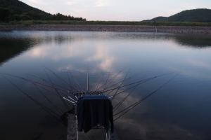 밤새 반딧불과 찌불놀이로 밤낚시를 재미있게 즐겨본다 다시 아침이 밝아온다 |