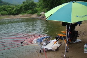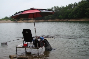 제방 우측에 자리 잡은 필자의 포인트 수심 4~5m 권 여름에 잉어와 향어 포인트 |