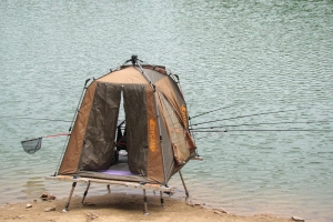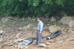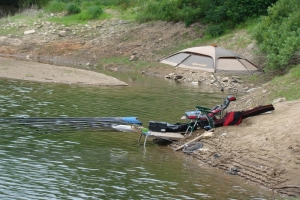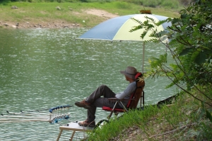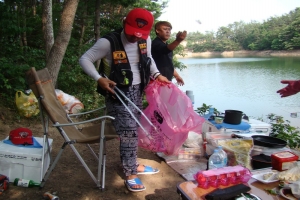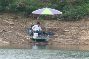 이 저수지 밑에 거주하시는 현지 조사님 현지 조사님 왈 5년전에 저수지를 완전히 말리고 고기를 싹 글거내고 새로 붕어 치어와 잉어, 향어를 풀어다고 합니다. 현 여기는 8치급 이상 고기는 없고 이제까지 현지인이 잡은 최대어는 8치라고 합니다. 심심하면 올라와서 낚시 한다고 합니다. |