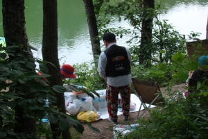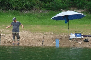 | 담소를 나누고 있는데 제방 좌측에 포인트를 선정하시는 조사님 |