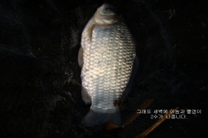 아침이 밝아옵니다 밤새 말뚝 간간히 끌고들어가는 입질 그런데 그것이 참게 였다니 ㅠㅠㅠ. |