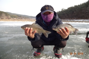 오늘꽝 조사 스산강적님 고마님의 붕어를 들고 찰칵