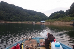 댐낚시는 집어낚시이죠 오늘은 32쌍포로 밑밥질을 시작합니다 |