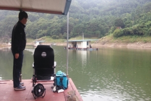 | 강원권 댐낚시가 처음인 후배를 위해 바닥 안착이 용이한 자리에 앉혔습니다 |
