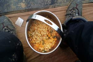 | 아침은 가볍게 라면 한그릇에 밥말아서 먹고 오전낚시 즐겨봅니다. |