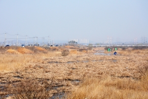 차에서 본 좌측의 꾼들이 아침장에 열중.... |