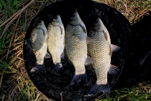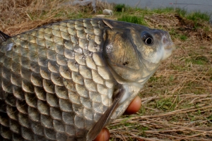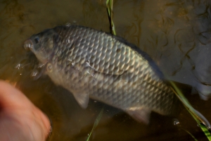 동틀 무렵에 멋진 붕어를 걸어 내었습니다 |