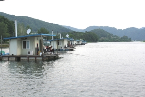 | 하절기 수위로 맞추어진 춘천댐 신포좌대들입니다 |