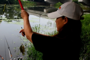 글루텐에 입질이 없어서 지렁이로 바꾸니 바로 요놈이 나오네요 |