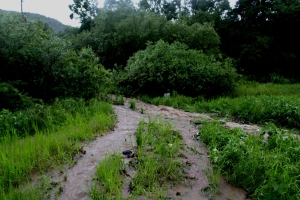 산을 넘어 나오는데 온통 산에서 물이 쏟아집니다 |