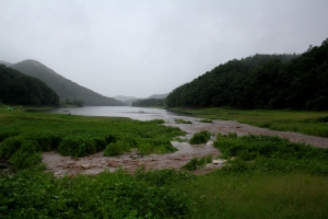 갑자기 두줄기 물골에서 강물처럼 흘러 듭니다 |
