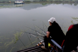수초와 좌대가 어울어져 멋진 그림을 만들어 줍니다 |