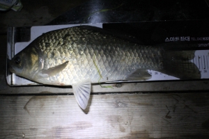 마눌님이 밤0시경 걸어 낸 34센티급 월척 입니다 |