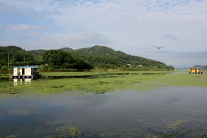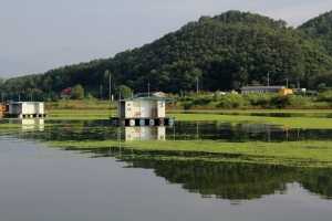 | 수초와 좌대가 어울어져 멋진 그림을 만들어 줍니다 |