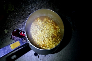 | 라면으로 저녁을 먹고 시작 |