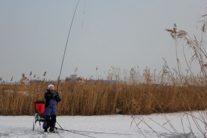 눈이 덮혀서 그런지 붕어 입질은 없어요 |