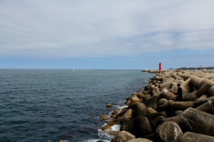 파도 잔잔한 아야진 포구에서 낚시를 다시 합니다 |