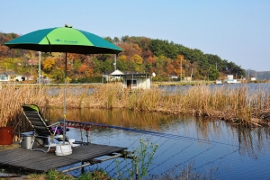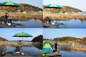 앞에 좌대가 있으며 부들과의 거리가 제대로 인듯한데....뒤에서 |