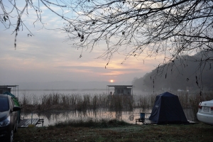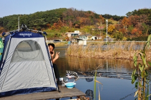 | 일행이 준비해준 밥으로 후딱 점심을 먹고 상류 주차장 새물 유입구 두번째 자리에 이렇게 셋팅 완료... |