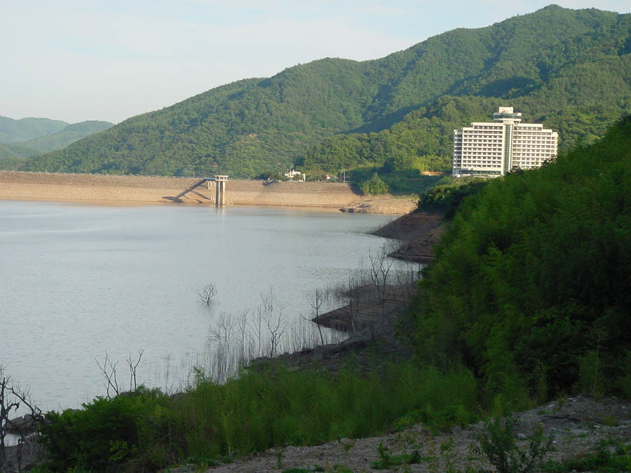 잠시 하동읍에 도착하여 섬진강 재첩국에 저녁을 먹고 횡천강을 따라 청학동 길을 구비구비 한참을 오르니 하동댐 제방이 보인다.