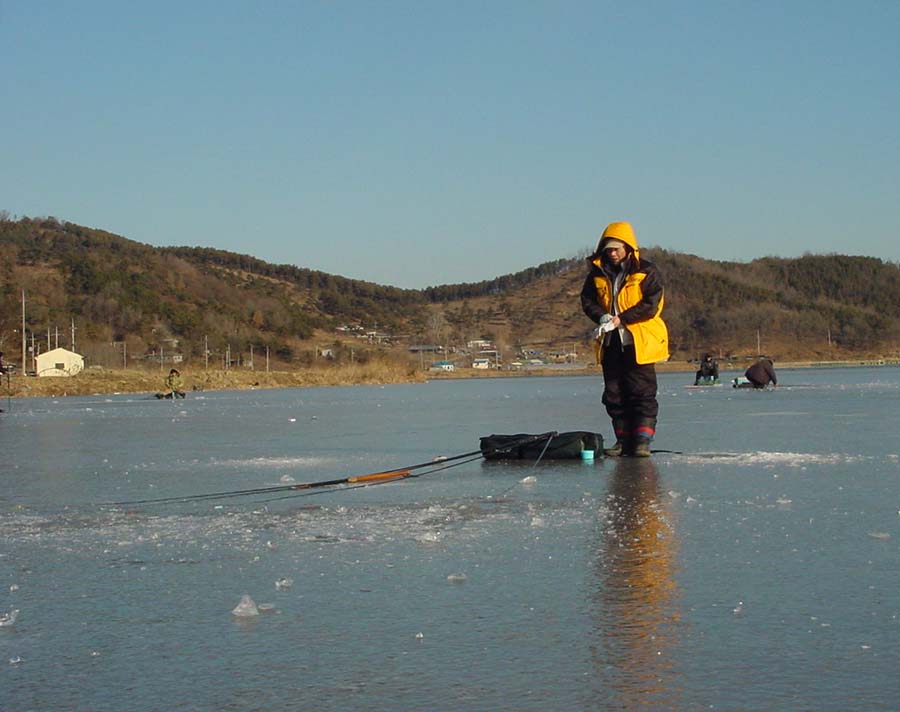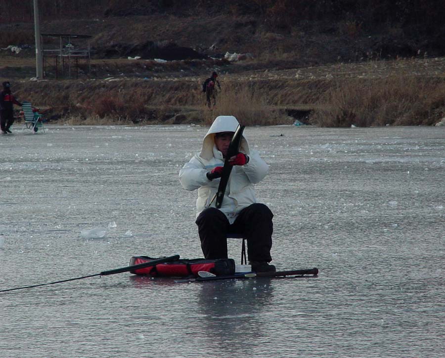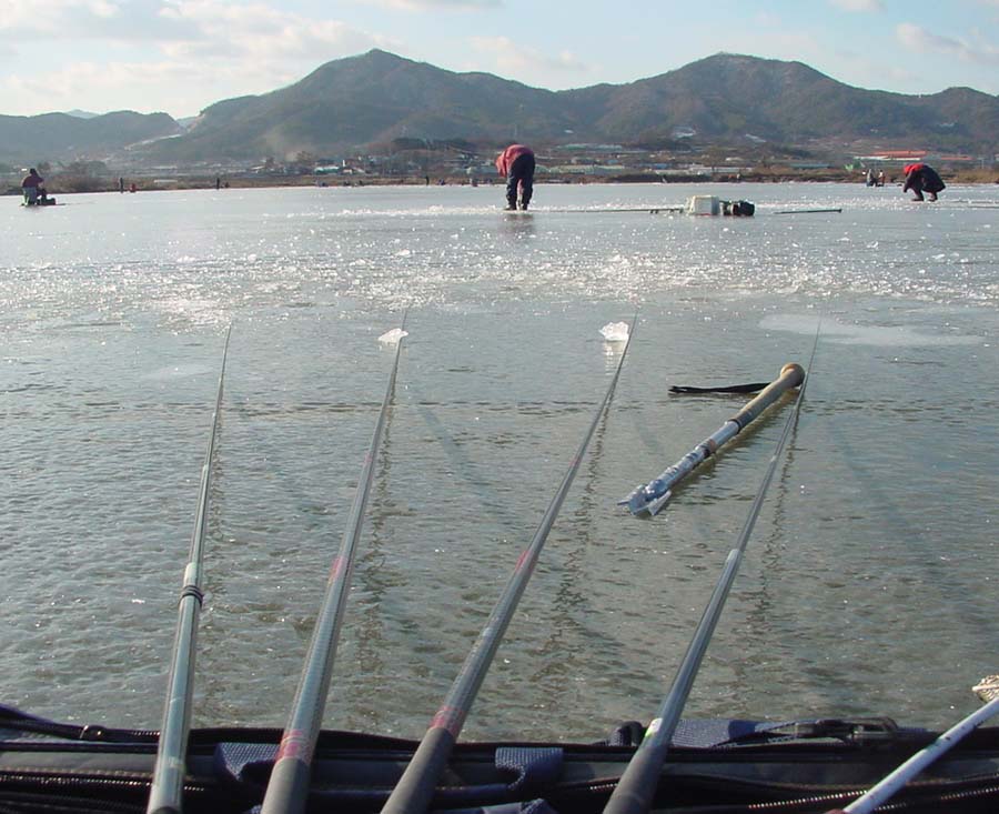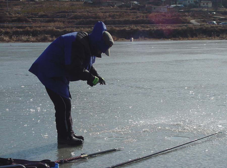 낚시줄은 어느새 얼어붙은 얼음 사이에 끼여있기가 일수였다.