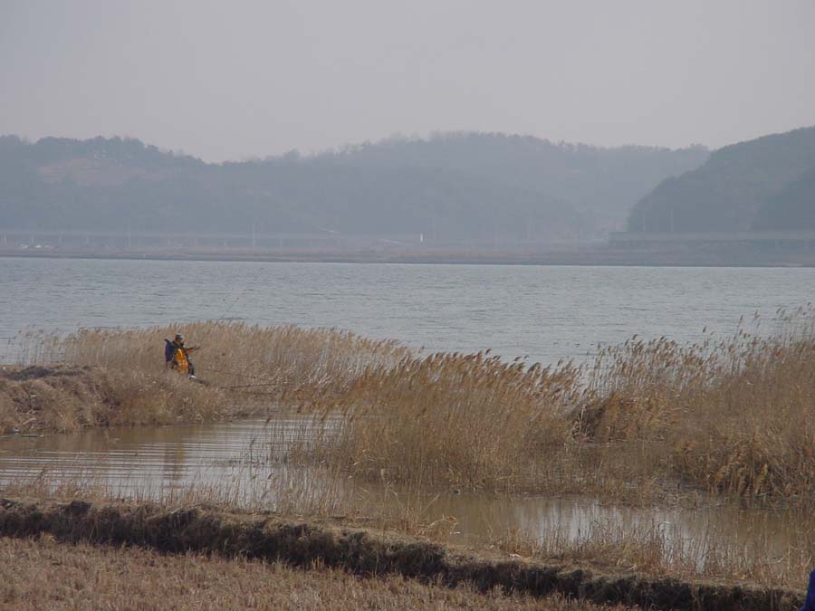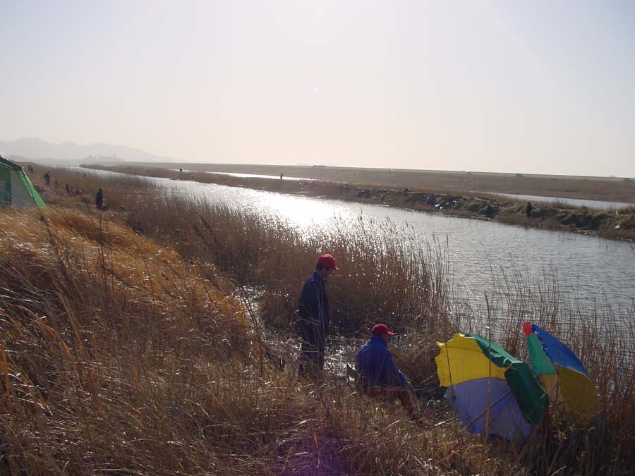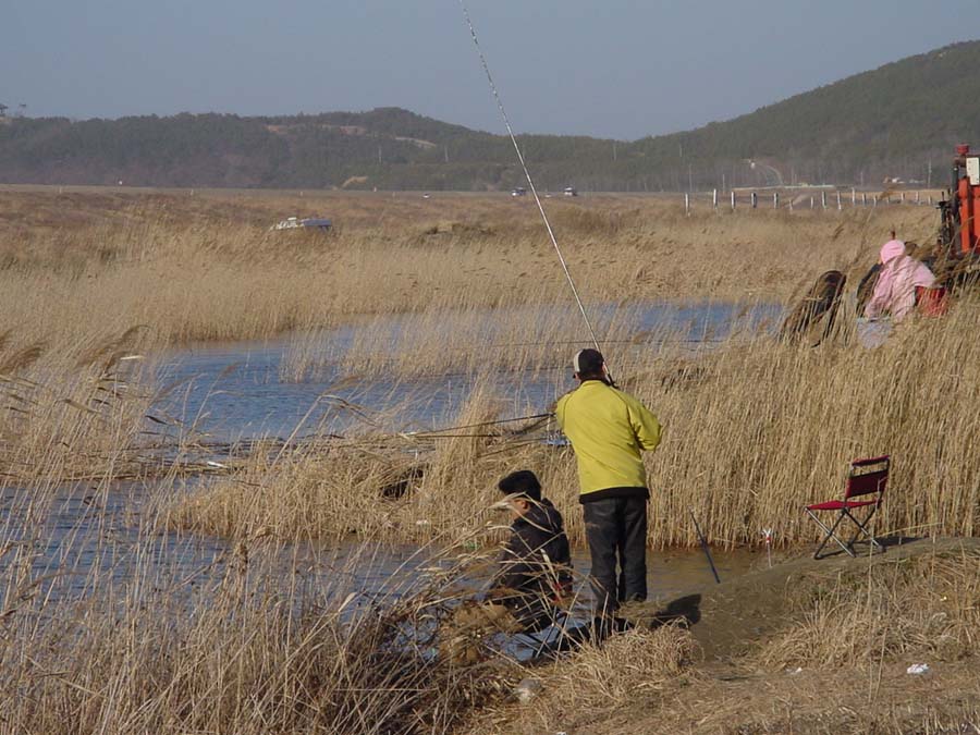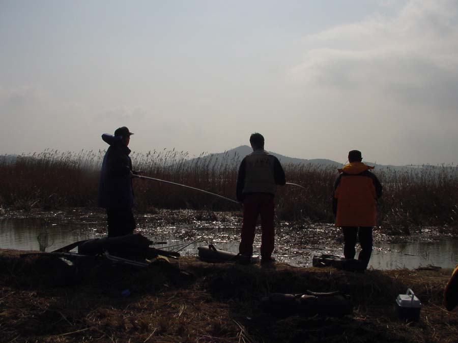 교로리 UN수로에서 낚시를 즐기는 조사들의 모습