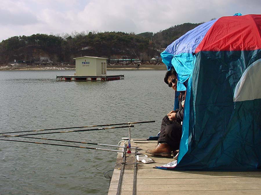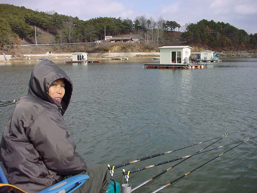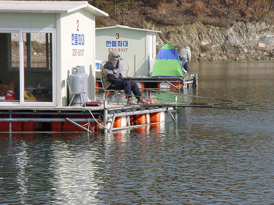 뒷쪽 좌대에 자리한 다른 조사... 입질이 없는듯...