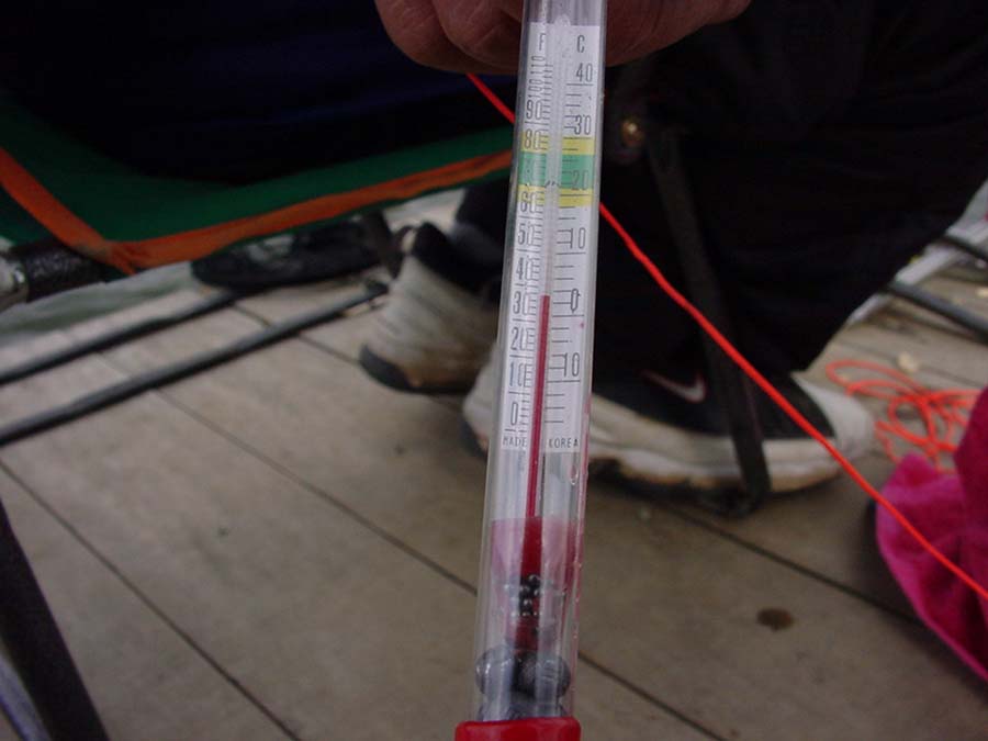 준비해간 온도계로 수온을 체크하니 영상 4도 활성도가 떨어질 온도다.