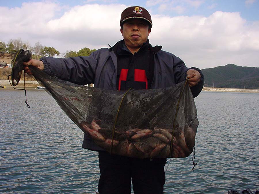 기웃거리니... 허걱!! 32cm급 월척을 비롯하여 최소 5치까지 엄청나게 잡았다.