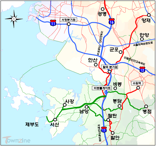 '신갈안산간 고속도로' 등을 이용해 '서해안고속도로'로 내려 오실 수 있습니다.