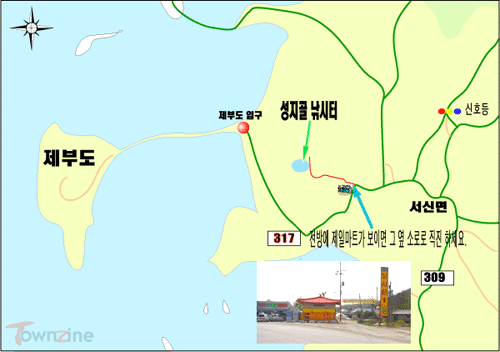 입간판과 그 옆에 '제부제일마트'가 보입니다.