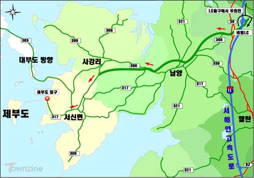 방면으로 하여 계속 직진해 비봉, 남양 등을 거쳐 서신면 제부도 방면으로 오시면 됩니다.