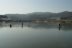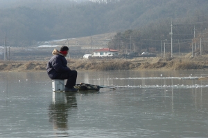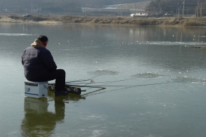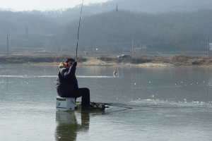 상류권을 바라보고... 결빙 소식에 아침부터 많은 분들이 찾으셨습니다 |