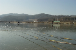 낚싯대는 나란히 4대를 펼처 놓으셨습니다 |