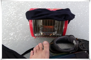 | 이부장은 낚시도 못하고 처량하게 메기 잡은 신발과 양말을 말리고 있습니다.ㅠㅠ |