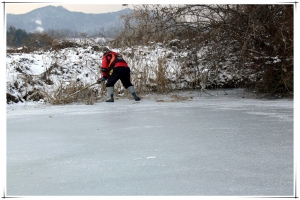 | 첫구멍에서 입질이 없자 몇가닥의 갈대가 있는 곳에 포인트 작업중인 플랑크톤님 |