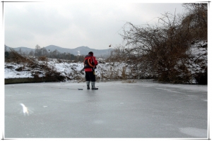 | 그래도 입질이 없자 붕어를 깨워야 한다며 저수지를 쿵쿵울리며 뛰어 다니시네요 |