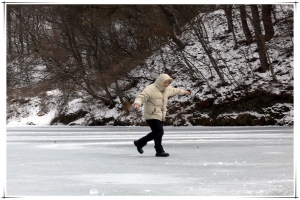그래도 입질이 없자 붕어를 깨워야 한다며 저수지를 쿵쿵울리며 뛰어 다니시네요 |