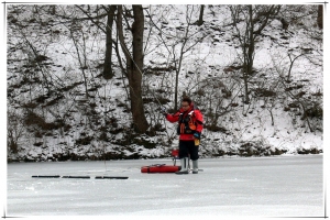 미소컴님도 올해 첫 얼음낚시 준비를 하시고 계시네요... 그래도 준비를 맞치고 이부장 얼음구멍을 다섯개나 뚫어 주셨습니다 |