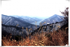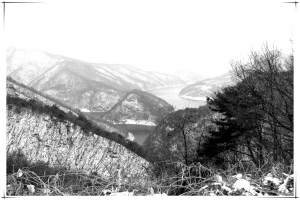 | 철수길에 길을 잘못들어 비포장도로에 눈쌓인 해발 800m 산을 넘어오다가 찍은 대청호 줄기 |