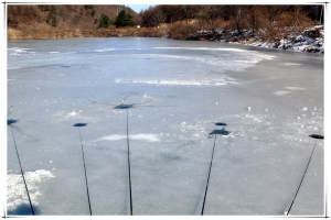 상궁저수지 중류권 모습... 헉~ 얼음이 제법 두꺼워 보이네요 |
